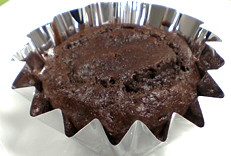 (5)型に流し入れ、170度に熱したオーブンで、竹串を刺しても生地がつかなくなるまで焼く。(約10分)(蒸し器で蒸してもよい)